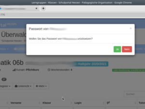3. “Ja” auswählen, eigenes Kennwort angeben, dann erhält der Schüler ein neues Kennwort.