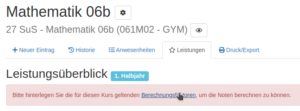 Im Schulportal können Noten aller Art erfasst und verrechnet werden. In der App “mein Unterricht” kann unter dem Reiter “Leistung” in jedem Kurs die Notenverwaltung geöffnet werden.