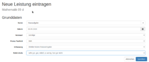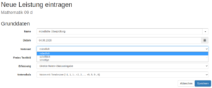 Neue Leistung in die Kursmappe eintragen (Klausur, Hausarbeit, etc.).