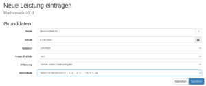 Eingabe der Noten der Klassenarbeit vorbereiten.